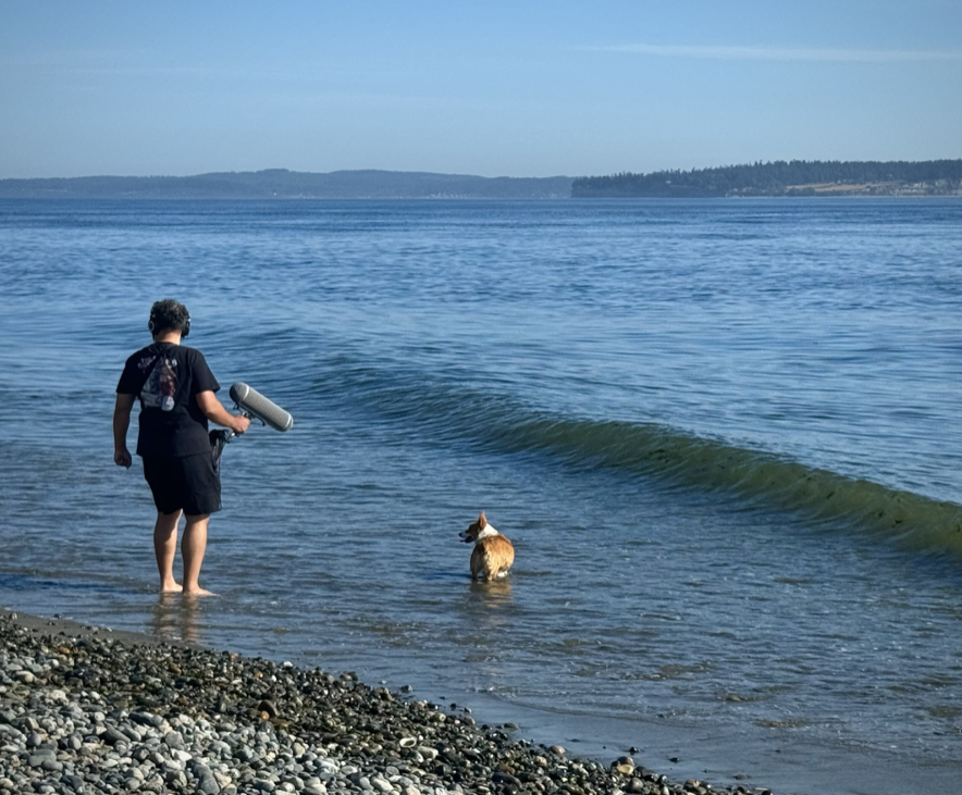 Like the waves of the Puget Sound, the wooden steps where a pivotal scene happens, and the ferry ride. Even Pearl’s (aka “Run’s”) actual bark, digging, and running sounds. I couldn’t be more excited about how it’s coming together.